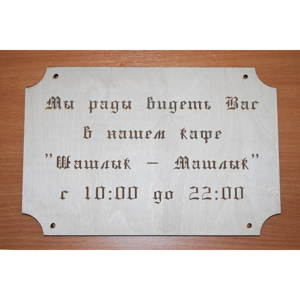 Изготовление деревянных вывесок. Нанесение надписей, логотипов на таблички из дерева методом лазерной гравировки. Заказать таблички из дерева в Москве и СПб.