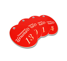 Гардеробные номерки могут быть самыми разнообразными по цвету, иметь прямоугольную, круглую, квадратную или фигурную форму. Дизайн номерка желательно выполнять в соответствии с фирменным стилем заведения, поскольку гардеробный номерок является хоть и небольшим, но значимым для формирования имиджа элементом. Бирки – еще одна важная деталь, помогающая навести порядок. С помощью бирок нумеруют ключи, кресла в зрительных залах, другое имущество. Если необходимо организовать поток клиентов бизнес-центре, отделении банка, нотариальной конторе, удобно использовать жетоны.