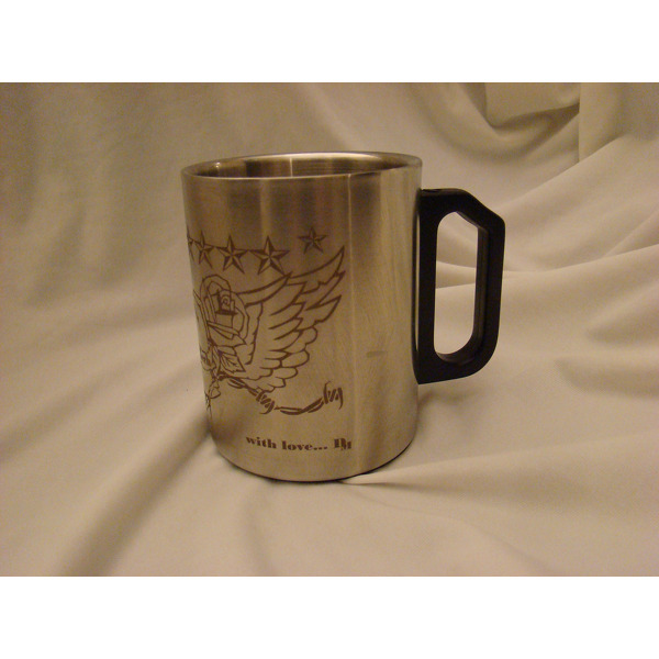 Гравировка лазером на кружках. Нанесение логотипа компании, поздравительных надписей и изображений. Лазерная гравировка на бокалах, кружках в подарок другу. Свадебная гравировка.