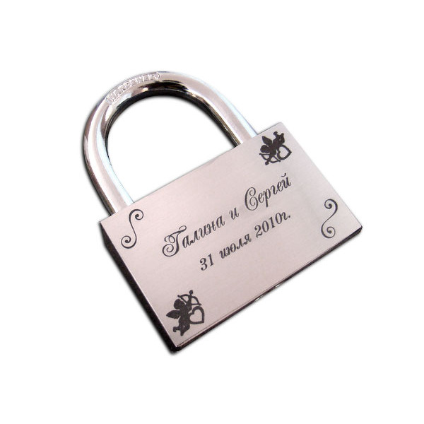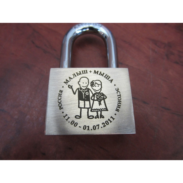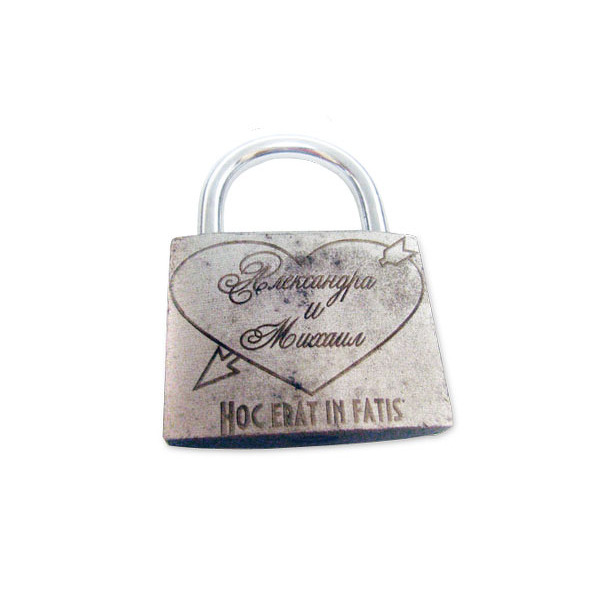 Лазерная гравировка на 'Замках счастья' инициалов, имен молодоженов, фотографий, даты свадьбы, романтических изображений. Свадебная гравировка. Выбор фразы для гравировки на замке.