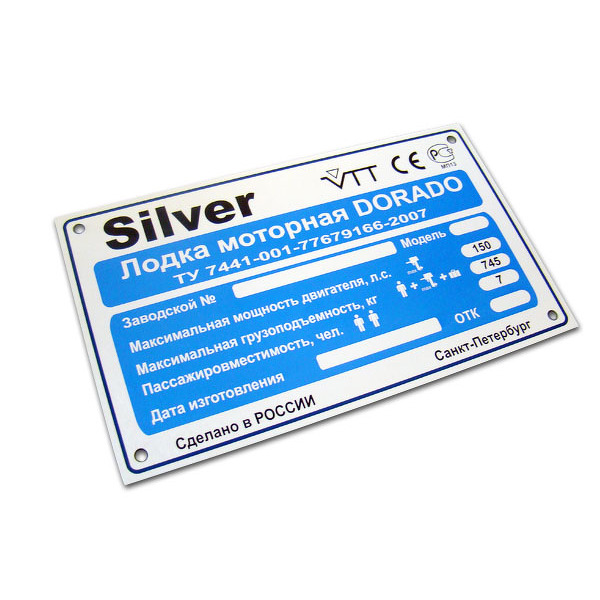 Производство цветных шильд и шильд с полноцветной печатью. Любые шильды на ваш выбор. Цветная гравировка на шильдах из металла. Заказ цветных шильд